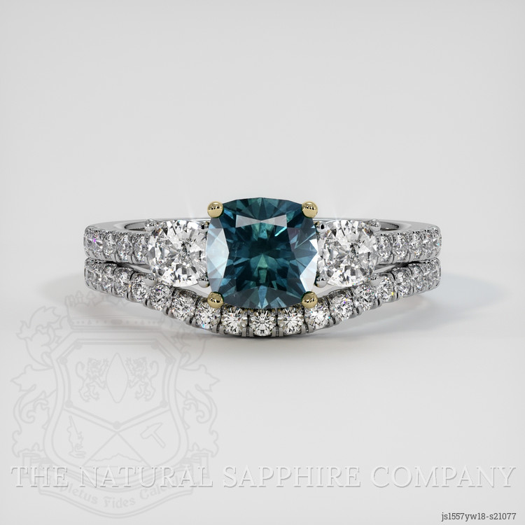 Pave Greenish Blue Sapphire Ring 1.69 Ct., 18K Yellow & White