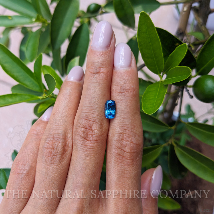 Introducing an exquisite masterpiece that epitomizes elegance and refinement, this ring, crafted by The Natural Sapphire Company, is more than a mere accessory—it is a testament to timeless sophistication and unparalleled craftsmanship. At the heart of this stunning ring lies a captivating 1.95 carat cushion-shaped greenish-blue sapphire, originating from the majestic terrains of Montana. With dimensions of 8.81 x 5.56 x 4.47 mm, this gemstone showcases an alluring blend of green and blue hues that captivate the soul. Its mixed brilliant cut endows the sapphire with exceptional light performance, setting it apart from other cuts and styles. Other sapphires may play with light, but few can match the scintillation of this masterpiece, where every facet reveals a shimmering dance that is nothing short of magical.