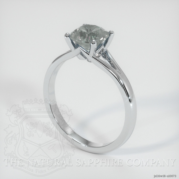 Solitaire Greenish Blue Sapphire Ring 2.00 Ct., 18K White Gold