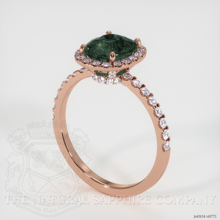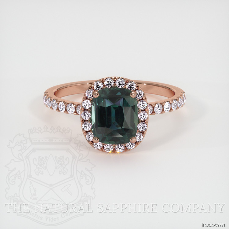 Pave Greenish Blue Sapphire Ring 3.19 Ct., 14K Rose Gold