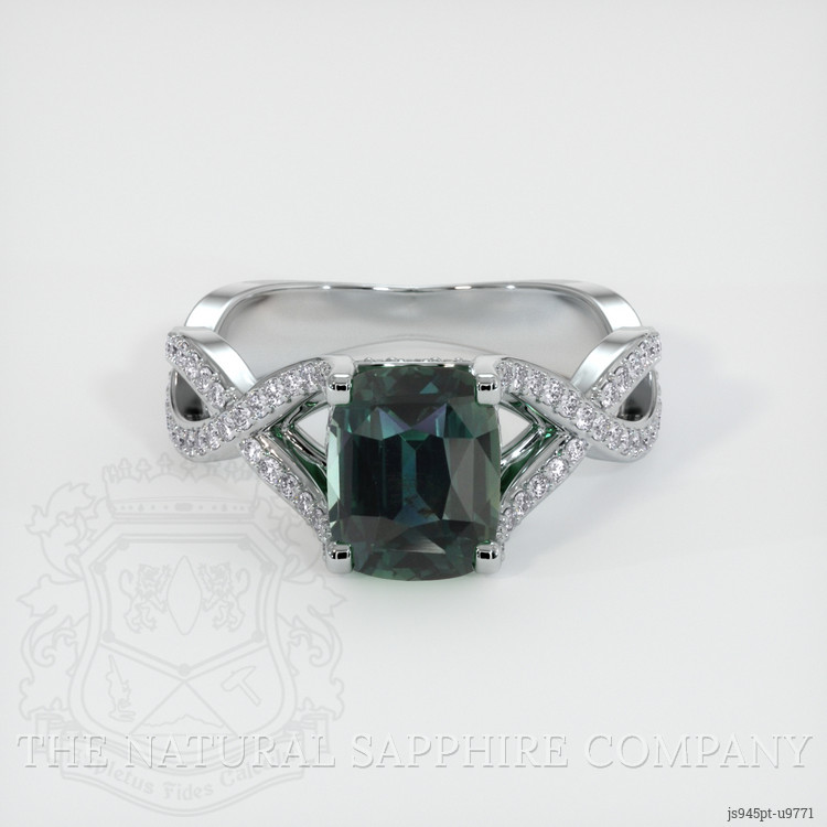 Pave Greenish Blue Sapphire Ring 3.19 Ct., Platinum 950