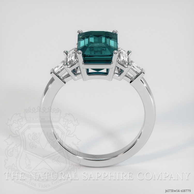 The ring from The Natural Sapphire Company showcases an exquisite emerald cut greenish blue sapphire at its center. Weighing an impressive 3.51 carats, the sapphire is crafted with precision into a flawless emerald cut, its transparent depths revealing dimensions of 9.62 x 6.51 x 5.13 mm. The gemstone's rarity is highlighted by its Ceylon origin, a region celebrated for producing some of the world's finest sapphires. With a clarity grade of very slightly included at eye level, this sapphire invites admiration, its vivid color saturation capturing the eye, while the expert heat treatment enhances its natural beauty. The polish is of excellent quality, ensuring that every facet gleams with radiant perfection.