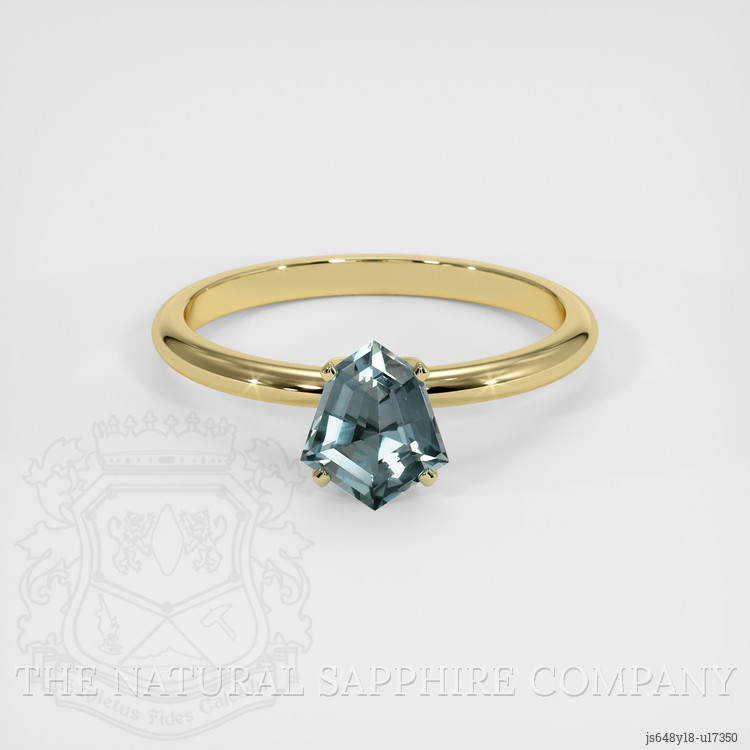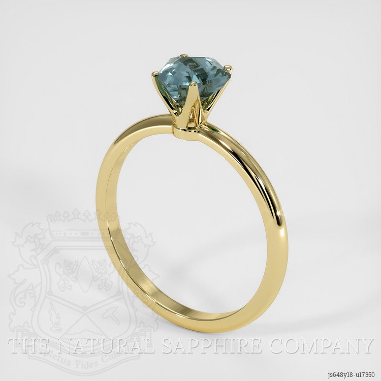 Solitaire Greenish Blue Sapphire Ring 1.10 Ct., 18K Yellow Gold