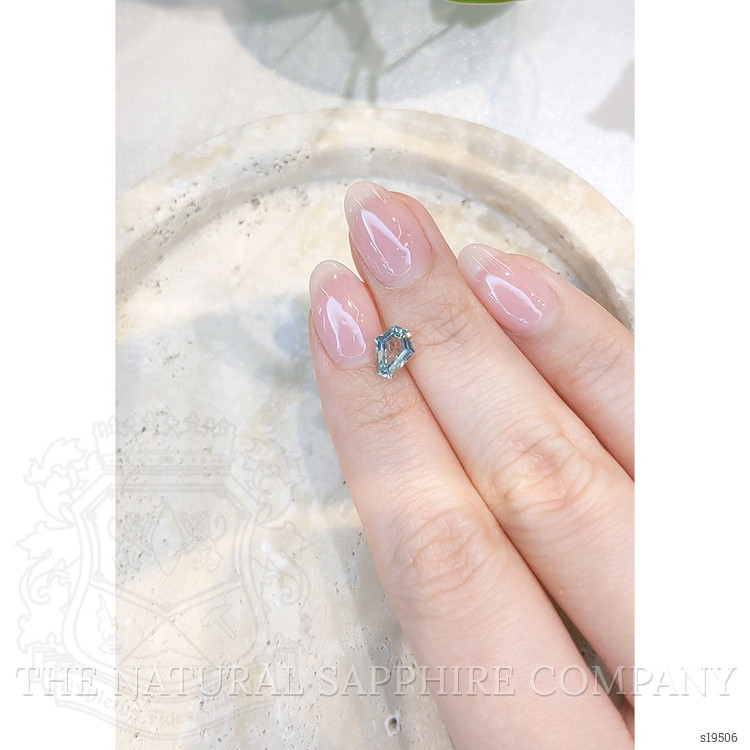 Introducing our exquisite ring from The Natural Sapphire Company, featuring a stunning 1.12 carat fancy shape greenish blue sapphire. This remarkable gemstone, sourced from the rich lands of Montana, exhibits exceptional transparency and is meticulously step cut to highlight its unique attributes. With dimensions of 7.56 x 6.16 x 3.22 mm, this sapphire presents a medium light color saturation that beautifully captures and reflects light, showcasing its eye clean clarity at eye level. The excellent polish ensures a smooth finish, enhancing its inherent luster and providing a captivating appeal.
