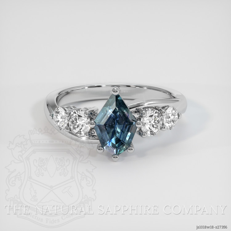 Accent Stones Greenish Blue Sapphire Ring 1.23 Ct., 18K White Gold
