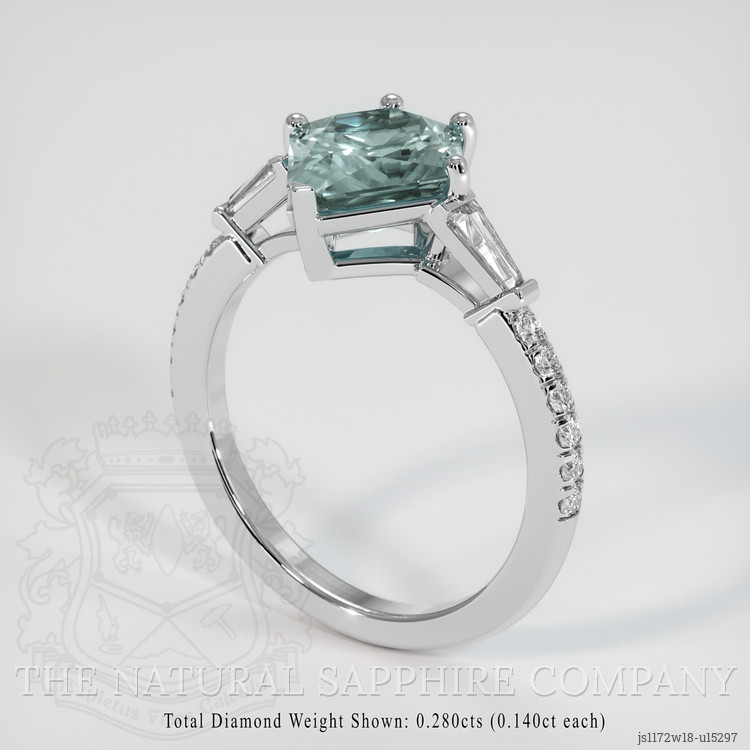 Crafted meticulously by The Natural Sapphire Company, this masterpiece is set in 14K white gold, an embodiment of pure luxury. The white gold setting not only complements the radiant blue-green sapphire but also represents a symbol of eternal love and commitment. This ring is more than a piece of jewelry; it is a tribute to rare beauty and a celebration of enduring devotion, designed for those who seek to embrace an elite realm of elegance.