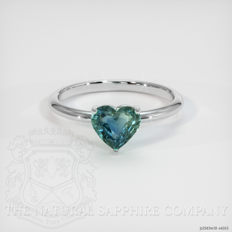 Solitaire Greenish Blue Sapphire Ring 1.53 Ct., 18K White Gold