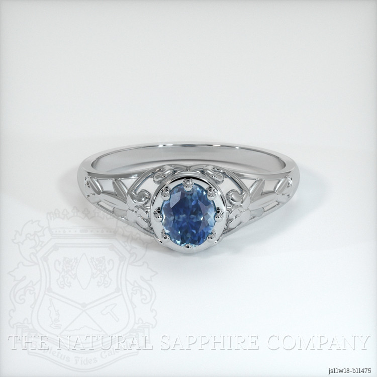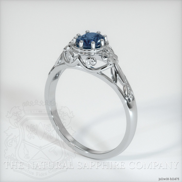 Antique Style Greenish Blue Sapphire Ring 0.62 Ct., 18K White Gold