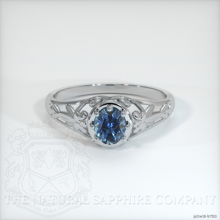 Antique Style Greenish Blue Sapphire Ring 0.70 Ct., 18K White Gold