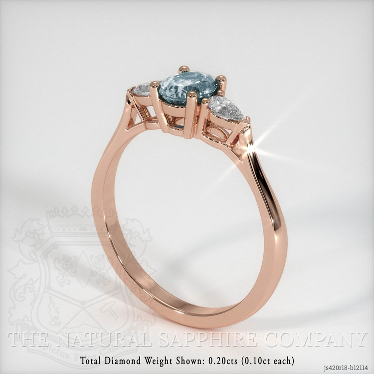 Three Stone Greenish Blue Sapphire Ring 0.71 Ct., 18K Rose Gold