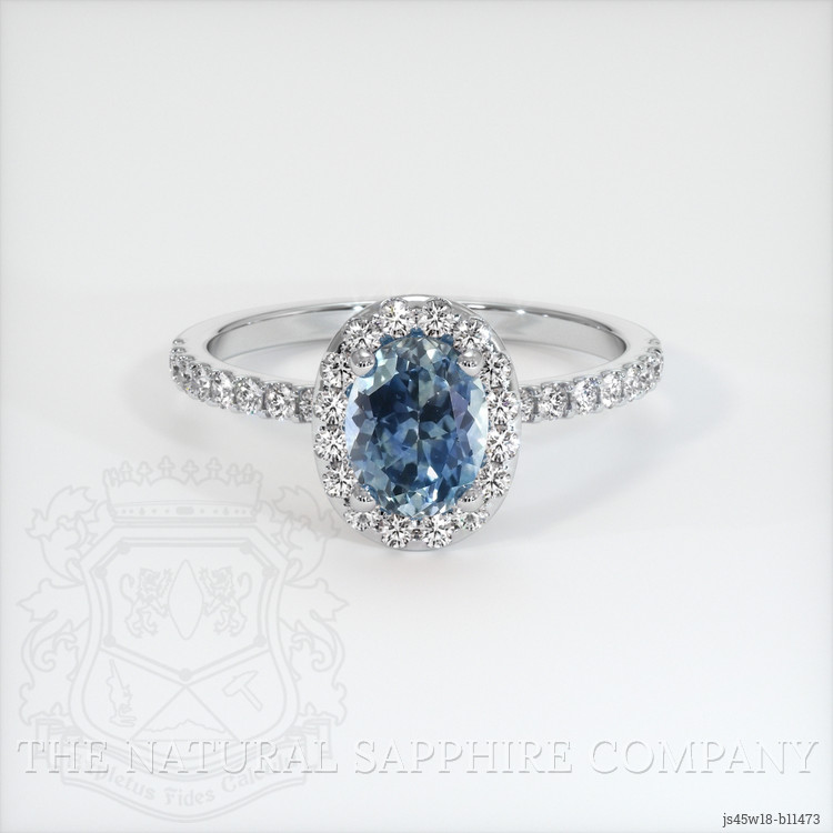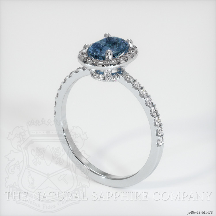 Pave Greenish Blue Sapphire Ring 0.79 Ct., 18K White Gold