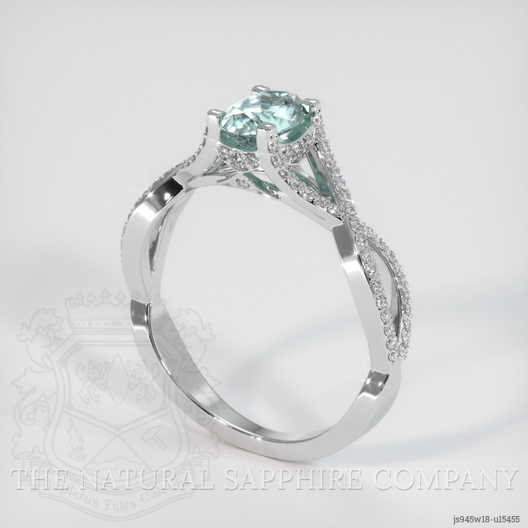 Pave Greenish Blue Sapphire Ring 0.79 Ct., 18K White Gold