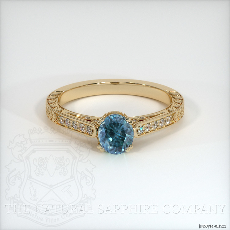 Antique Style Greenish Blue Sapphire Ring 0.88 Ct., 14K Yellow Gold