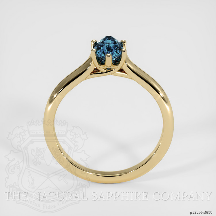 In the realm of everlasting promises and whispered dreams, The Natural Sapphire Company beckons you to discover an exquisite embodiment of nature's artistry—our enchanting sapphire ring. Nestled within its embrace of 14K yellow gold lies a luminous greenish-blue sapphire, a gem serenading with tales from the heart of Madagascar. Unblemished by enhancement, this 0.96-carat oval treasure, measured at 6.80 x 4.56 x 3.78 mm, captivates with its mixed brilliant cut, a kaleidoscope of shimmering facets capturing light like whispered secrets between lovers. Its intense color saturation awakens a vivid dreamscape, painting stories of the sea and sky meeting in eternal union.