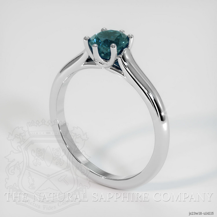 Solitaire Greenish Blue Sapphire Ring 0.99 Ct., 18K White Gold