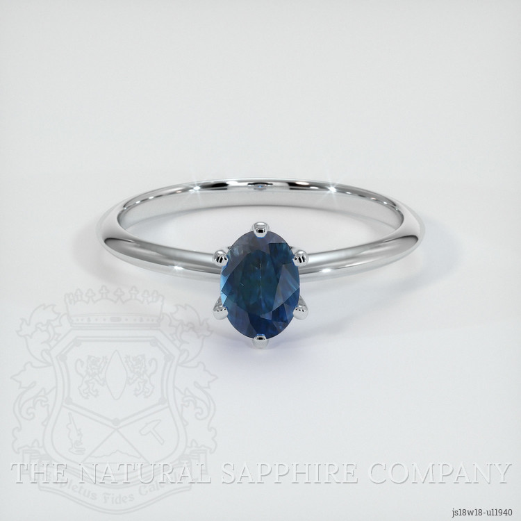 Solitaire Greenish Blue Sapphire Ring 1.07 Ct., 18K White Gold