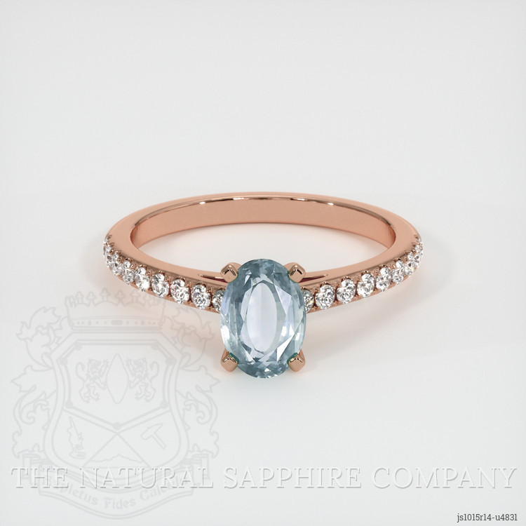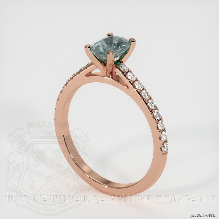 Pave Greenish Blue Sapphire Ring 1.13 Ct., 14K Rose Gold