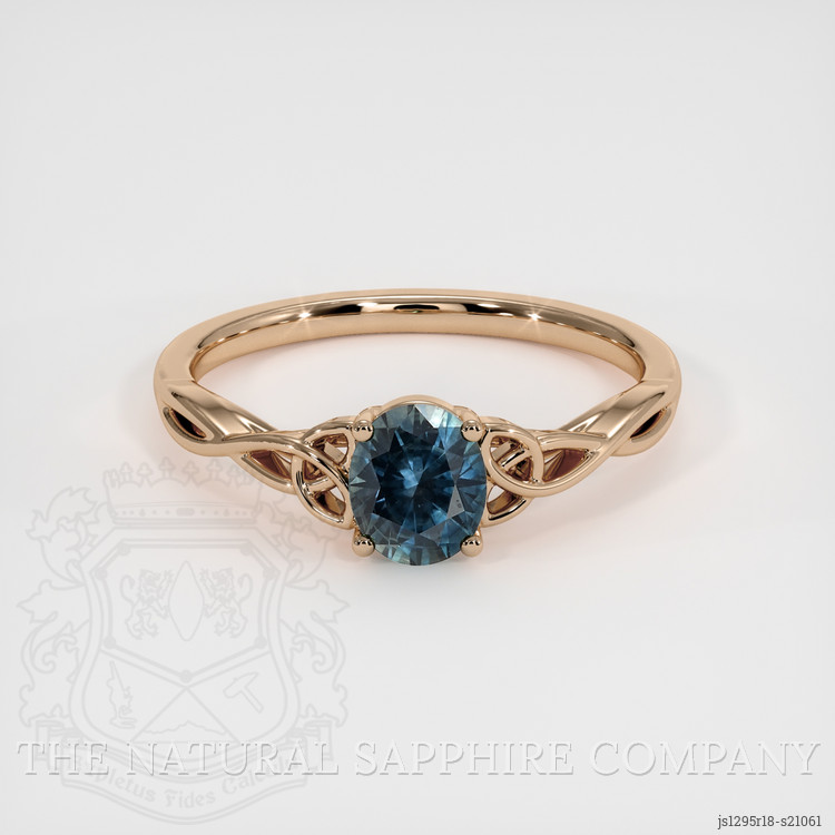 Celtic Greenish Blue Sapphire Ring 1.30 Ct., 18K Rose Gold