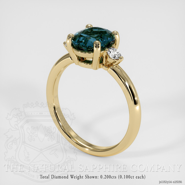 When you are searching for an engagement ring that feels both rare and unquestionably right, this oval greenish blue sapphire ring from The Natural Sapphire Company answers that call. The centre stone is a transparent 1.48 carat oval sapphire, measuring 7.26 by 6.14 by 3.94 millimeters, cut in a mixed brilliant style, with a clarity grade of very slightly included at eye level, vivid color saturation, and an excellent polish. The sapphire is untreated and originates from Madagascar, a source known for lively, natural tones. Flanking the sapphire are two white round natural diamonds totalling approximately 0.20 carats, graded VS1 and VS2 for clarity and E for color. The entire design is set in warm 14 karat yellow gold, a metal choice that enriches the greenish blue hues and adds a timeless feeling of luxury. If your priority is a distinctive centre stone that carries both presence and refined sparkle, this ring meets that need with honest gemological credentials and elegant craftsmanship.