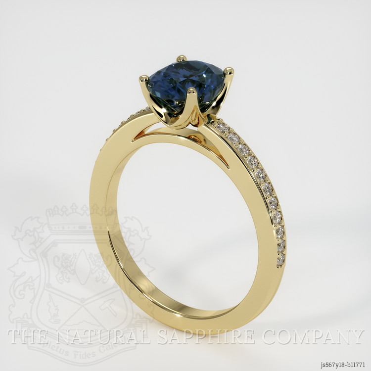 Pave Greenish Blue Sapphire Ring 1.72 Ct., 18K Yellow Gold