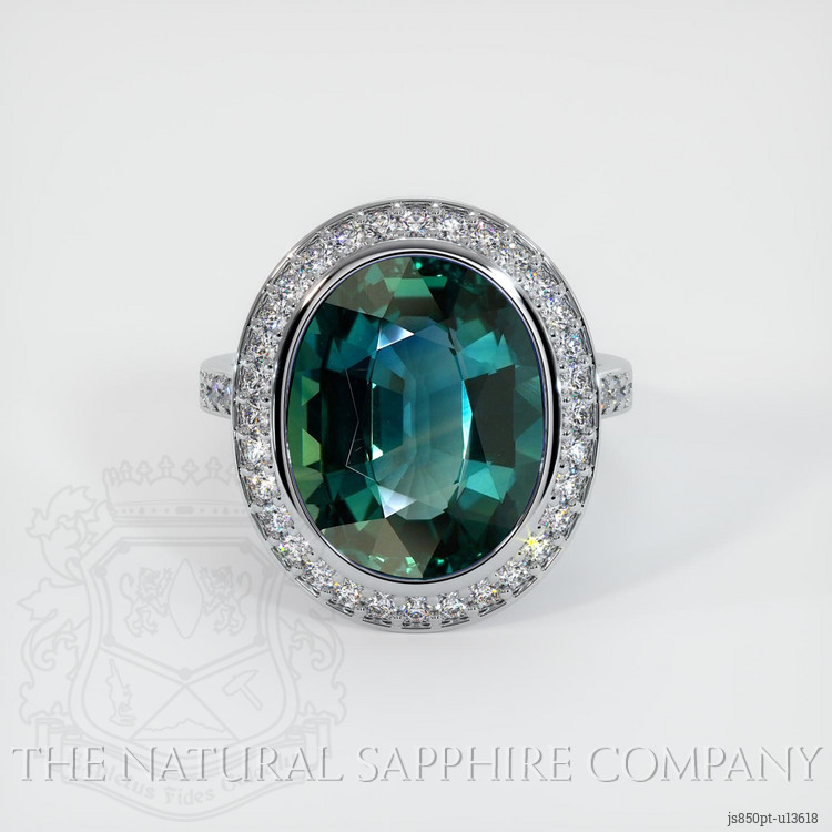 Pave Greenish Blue Sapphire Ring 10.66 Ct., Platinum 950