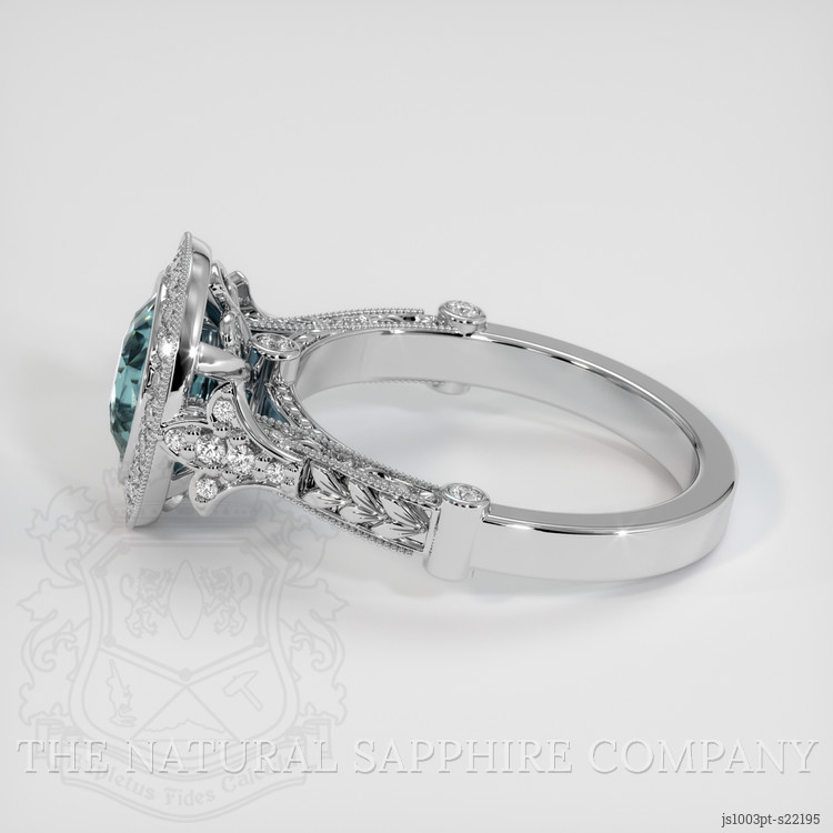 Antique Style Greenish Blue Sapphire Ring 2.55 Ct., Platinum 950