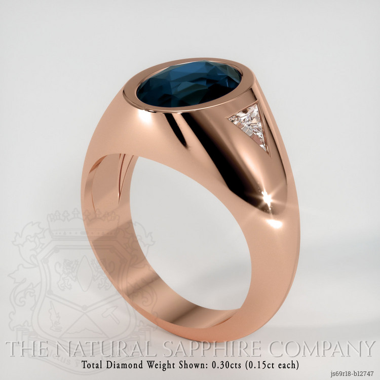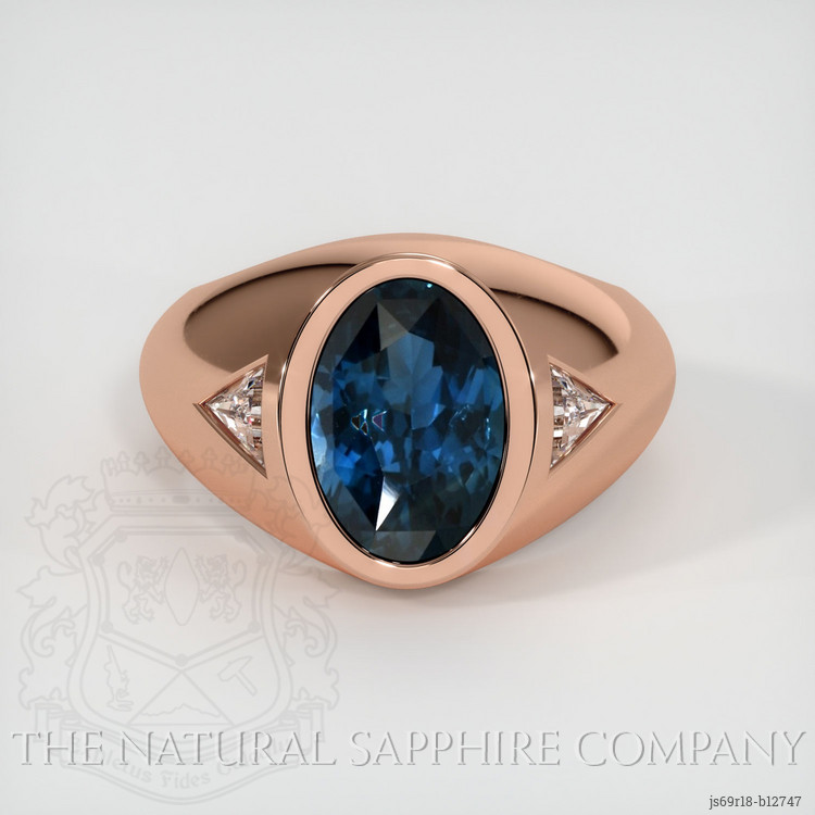 Men's Greenish Blue Sapphire Ring 3.05 Ct., 18K Rose Gold