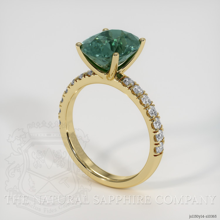 Pave Greenish Blue Sapphire Ring 4.25 Ct., 14K Yellow Gold