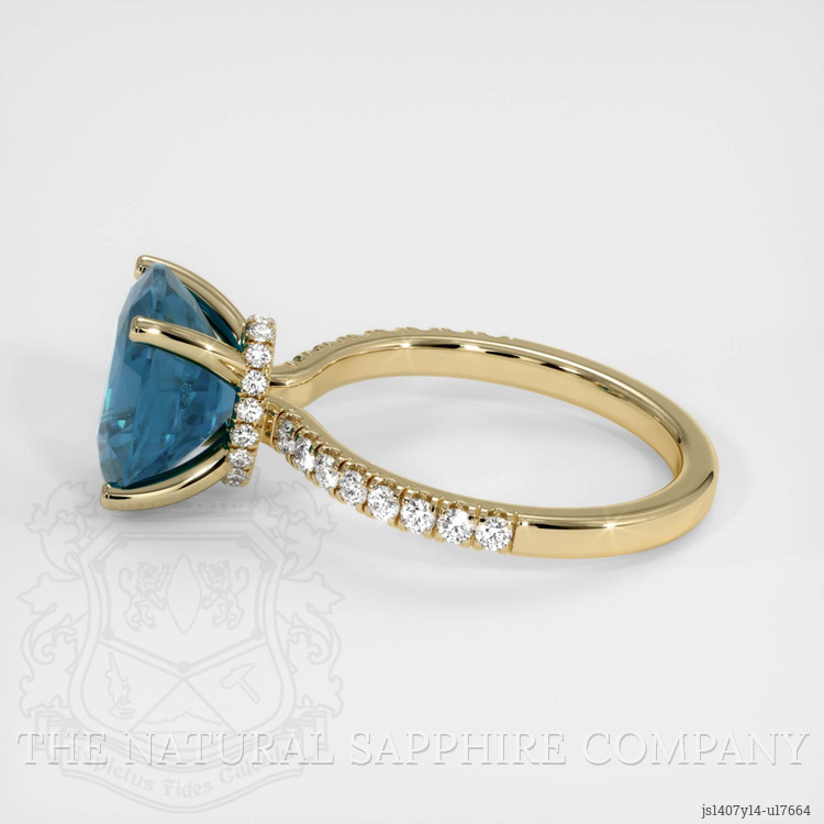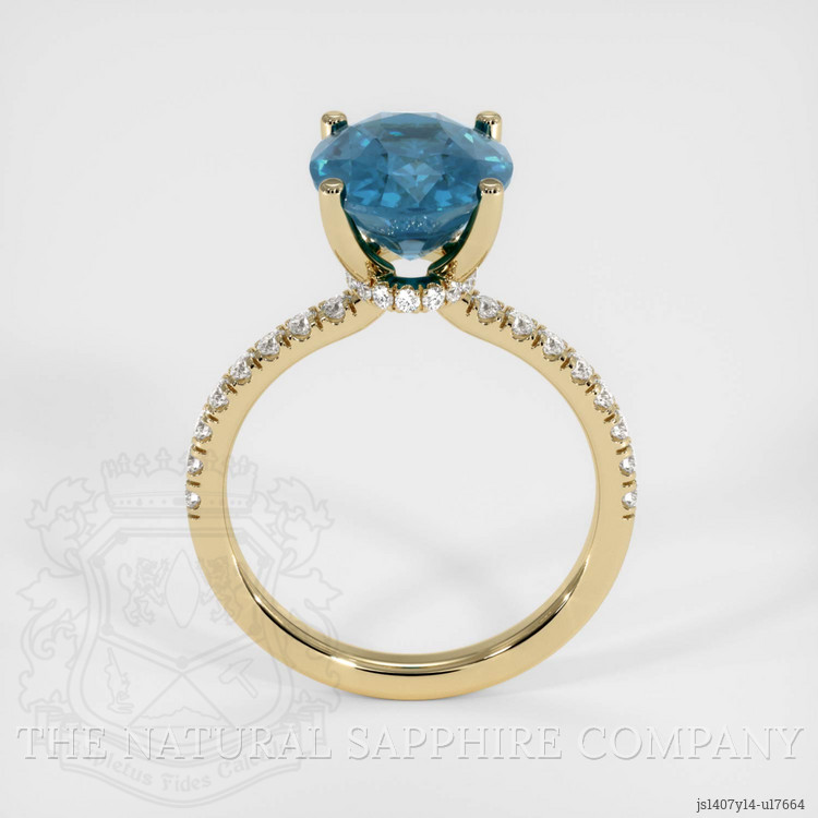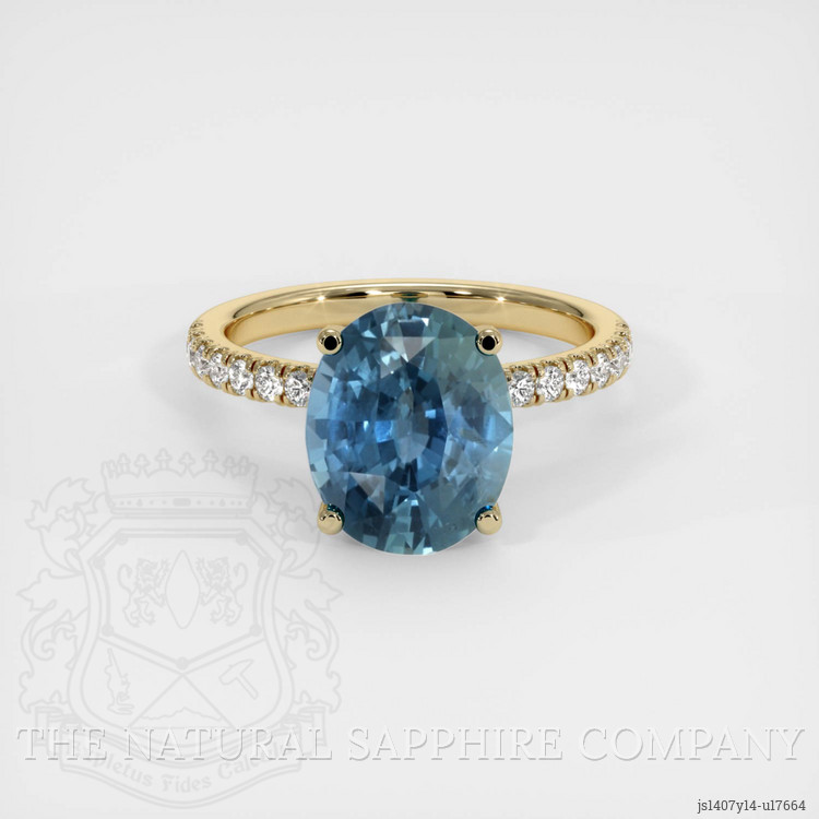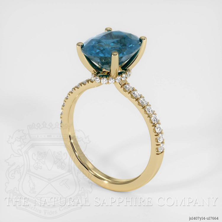 Pave Greenish Blue Sapphire Ring 4.33 Ct., 14K Yellow Gold