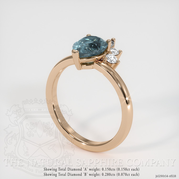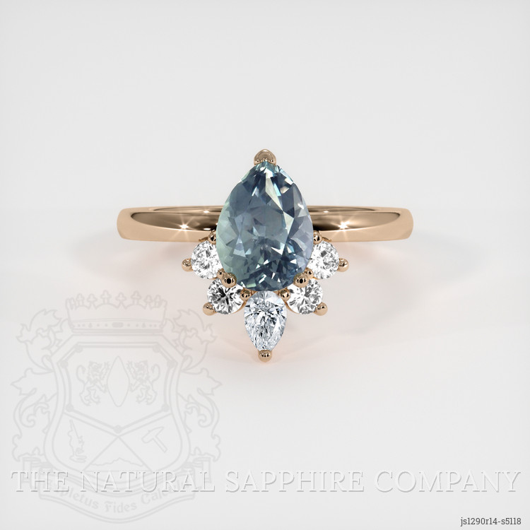 Accent Stones Greenish Blue Sapphire Ring 2.41 Ct., 14K Rose Gold