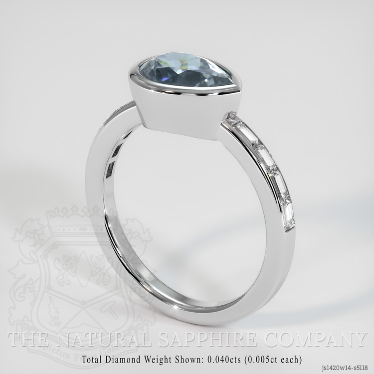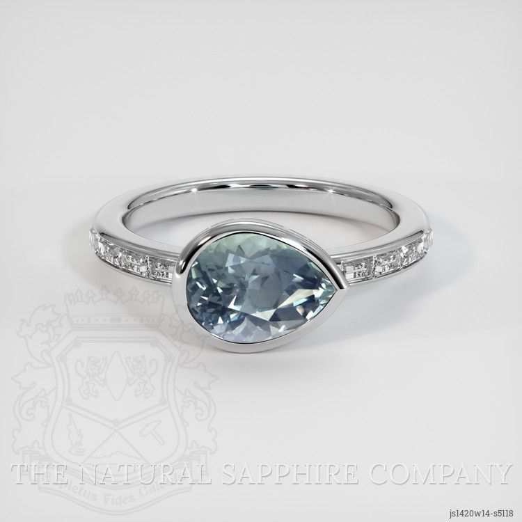 Introducing an exquisite masterpiece from The Natural Sapphire Company, this ring is a testament to unparalleled craftsmanship and elegance. At its heart lies a truly unique 2.41 carat pear-shaped greenish-blue sapphire. This gemstone, originating from the renowned mines of Montana, is the epitome of luxury with its mixed brilliant cut and dimensions of 9.16 x 6.81 x 5.26 mm. Its transparency and medium intense color saturation evoke the serene essence of crystal-clear waters. With a clarity grade of very slightly included when evaluated at eye level, this sapphire stands as a rare marvel in the world of gemstones, offering a glimpse into nature's finest artistry.