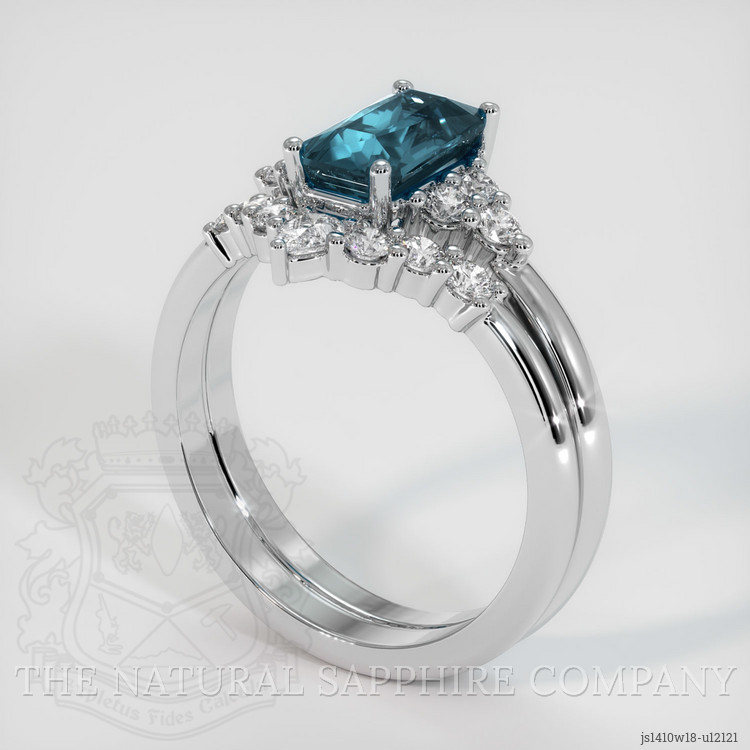 Accent Stones Greenish Blue Sapphire Ring 2.01 Ct., 18K White Gold