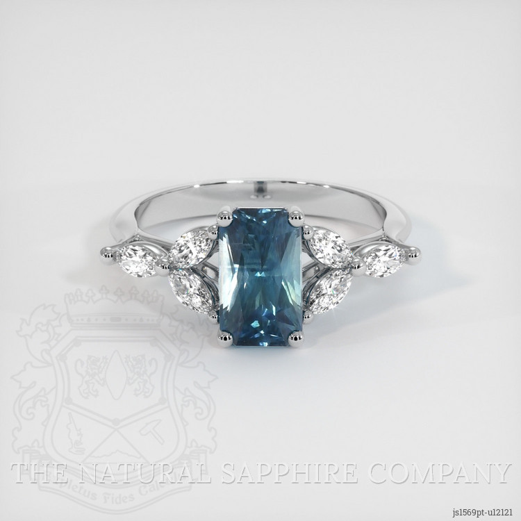 Accent Stones Greenish Blue Sapphire Ring 2.01 Ct., Platinum 950