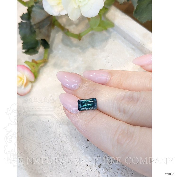 Introducing an exquisite piece from The Natural Sapphire Company, this ring is a harmonious blend of elegance and craftsmanship. Central to its allure is a 3.10 carat radiant shape greenish blue sapphire sourced from Montana, known for producing some of the world's most awe-inspiring gemstones. The sapphire's dimensions of 10.17 x 5.99 x 4.78 mm ensure a commanding presence on any hand. Its radiant cut, celebrated for maximizing brilliance, works to amplify the gemstone's intense color saturation, making the sapphire glimmer from every angle. The stone's clarity is slightly included, yet when viewed at eye level, its brilliance remains undiminished. Expertly heat-treated to enhance its natural allure, this sapphire stands as a testament to nature's artistry combined with human ingenuity.