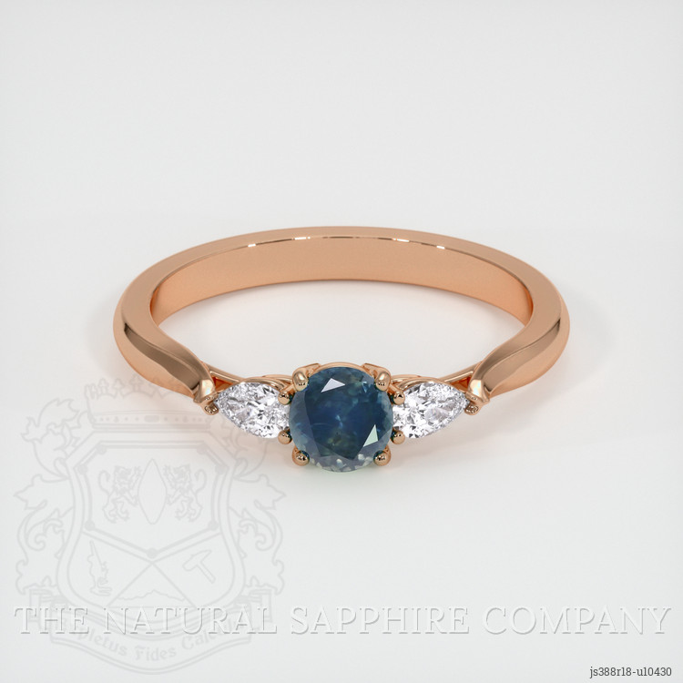 Three Stone Greenish Blue Sapphire Ring 0.58 Ct., 18K Rose Gold