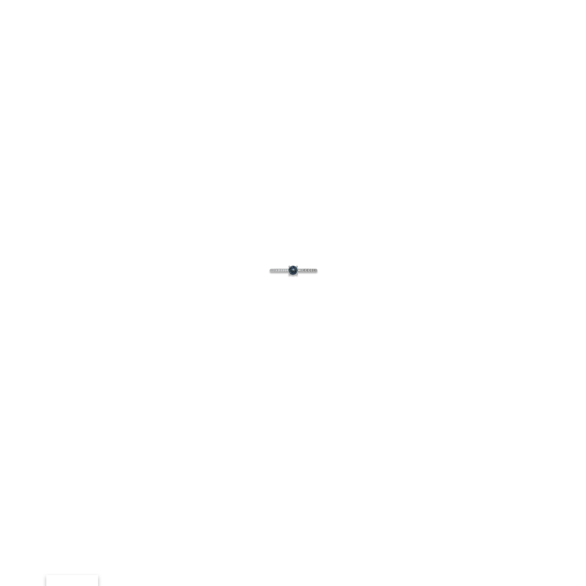 The ring features a beautiful, transparent 0.61 carat round shape greenish blue sapphire with the dimensions of 4.52 x 4.47 x 3.65 mm and a modified brilliant cut. It has a clarity grade of very slightly included (evaluated at eye level), dark color saturation, and an excellent polish. The origin of this sapphire is Montana.