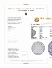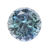 The ring features a beautiful, transparent 0.61 carat round shape greenish blue sapphire with the dimensions of 4.97 x 4.90 x 3.49 mm and a mixed brilliant cut. It has a clarity grade of eye clean (evaluated at eye level), intense color saturation, and an excellent polish. The origin of this sapphire is Montana.