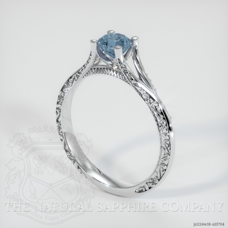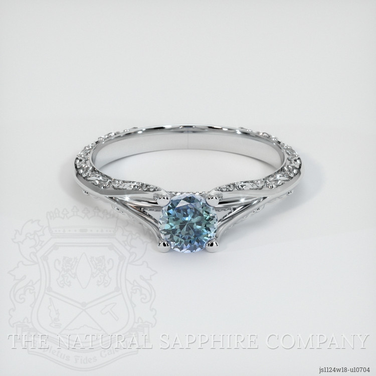 Antique Style Greenish Blue Sapphire Ring 0.61 Ct., 18K White Gold
