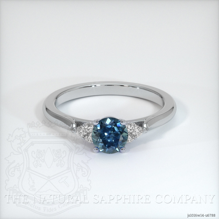 Accent Stones Greenish Blue Sapphire Ring 0.62 Ct., 14K White Gold