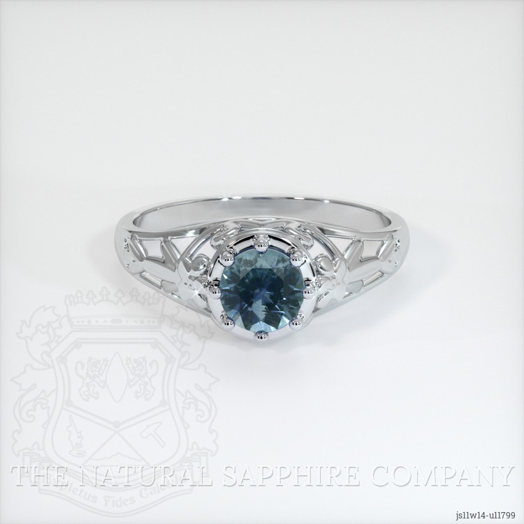 Antique Style Greenish Blue Sapphire Ring 0.77 Ct., 14K White Gold