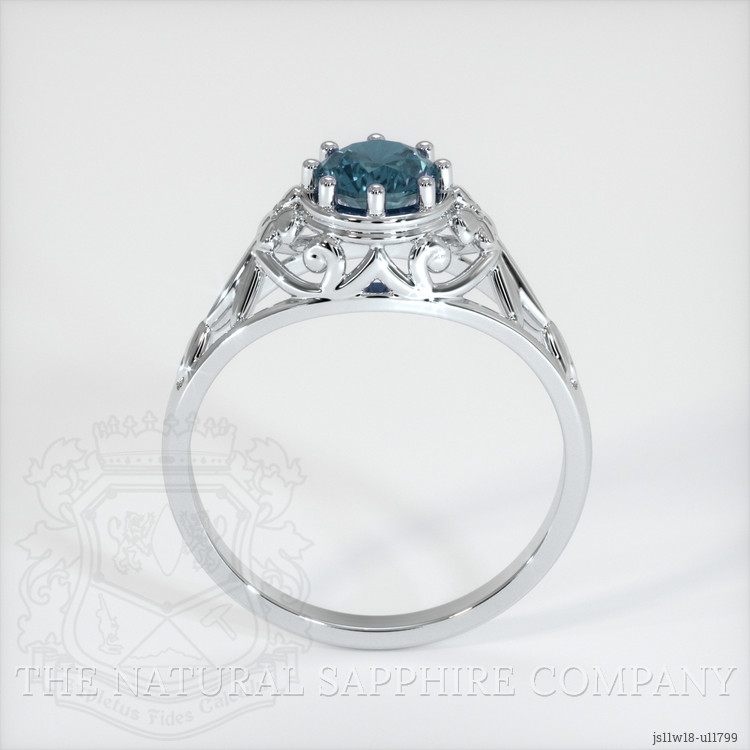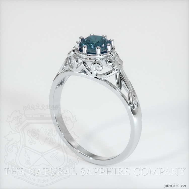 Antique Style Greenish Blue Sapphire Ring 0.77 Ct., 18K White Gold