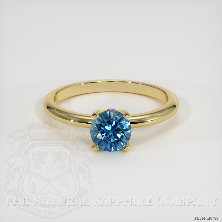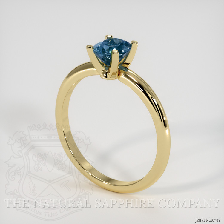 Solitaire Greenish Blue Sapphire Ring 0.78 Ct., 14K Yellow Gold
