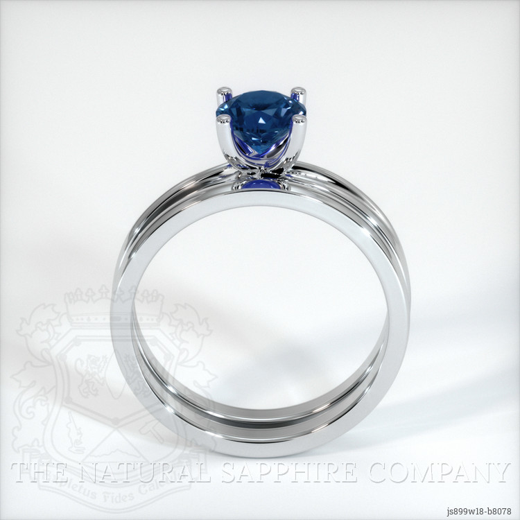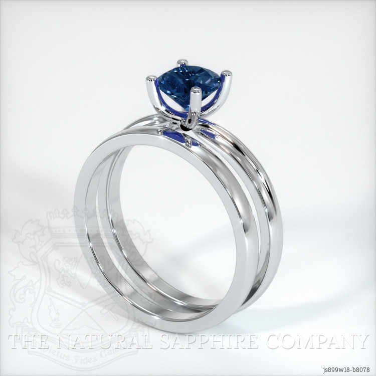 Wedding Set Greenish Blue Sapphire Ring 0.88 Ct., 18K White Gold