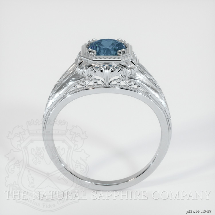 Antique Style Greenish Blue Sapphire Ring 0.90 Ct., 14K White Gold