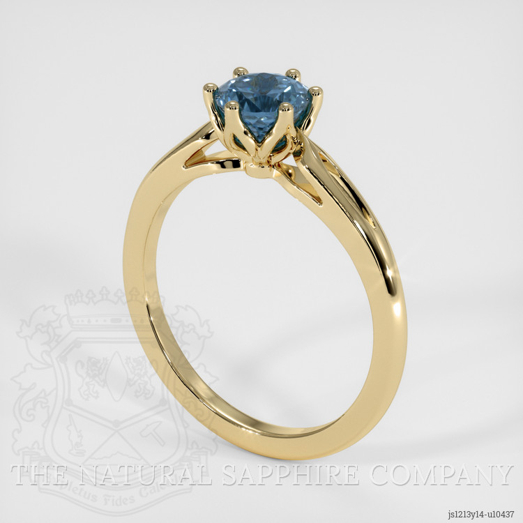 Floral Greenish Blue Sapphire Ring 0.90 Ct., 14K Yellow Gold