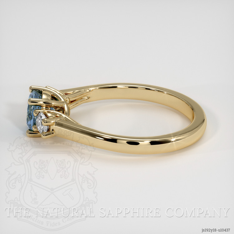 The two white diamonds that flank the center stone play an important role in elevating the sapphire s presence, their E color and VS clarity grades provide clean, bright contrast against the greenish blue center, and their round shape and precise placement enhance perceived size and sparkle. The 14K yellow gold setting complements the warmer tones within the Montana sapphire, bringing forward subtle green hints while enriching the blue, a contrast that pale white metal can sometimes mute. In comparison to many lower cost settings that use thinner metal, lower grade gold, or closed designs that restrict light, this ring s open gallery and well proportioned prongs allow light to travel through the sapphire and the side diamonds, maximizing brilliance and ensuring secure wear. The Natural Sapphire Company crafts each mounting with attention to how inclusions, cut and color interact, orienting the stone to present the most flattering face up color and to showcase those natural inclusions as features rather than flaws.
