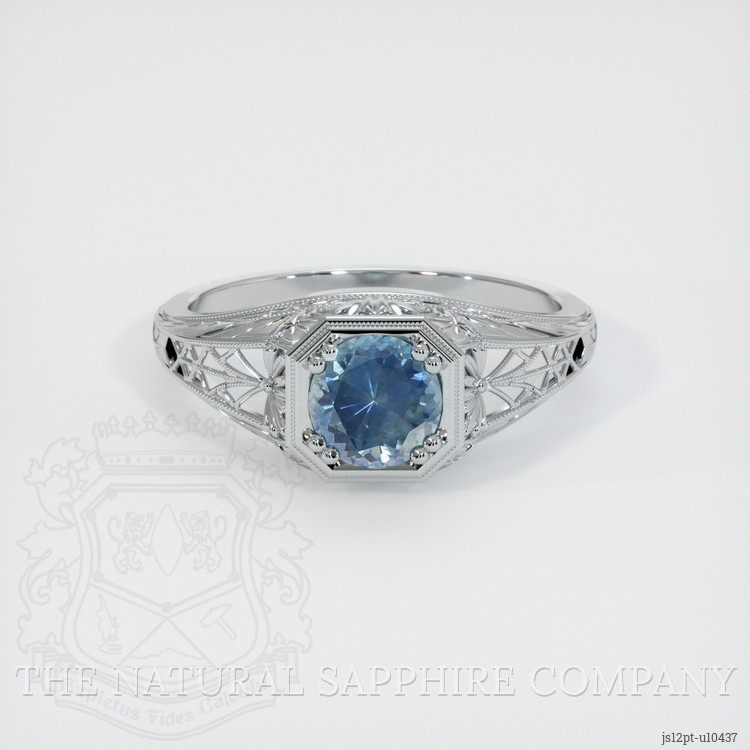 Antique Style Greenish Blue Sapphire Ring 0.90 Ct., Platinum 950