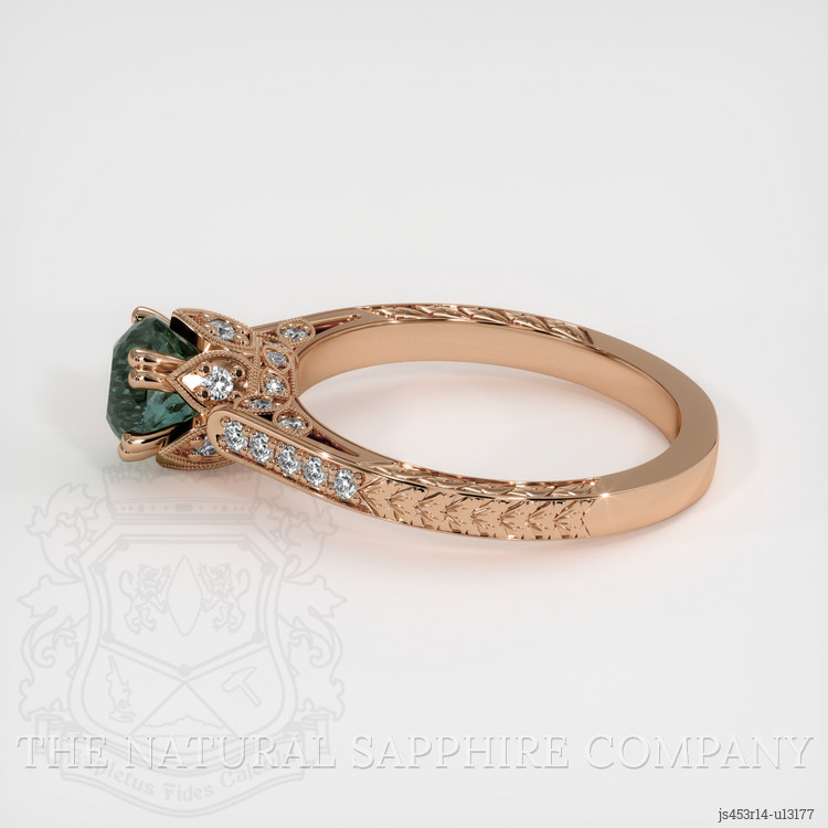 Antique Style Greenish Blue Sapphire Ring 1.09 Ct., 14K Rose Gold