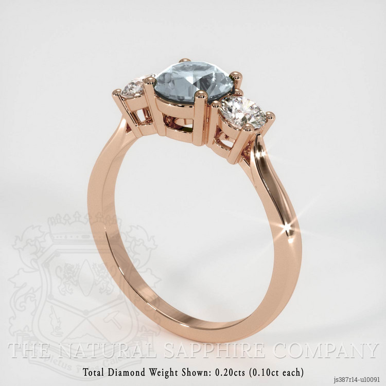 Three Stone Greenish Blue Sapphire Ring 1.33 Ct., 14K Rose Gold