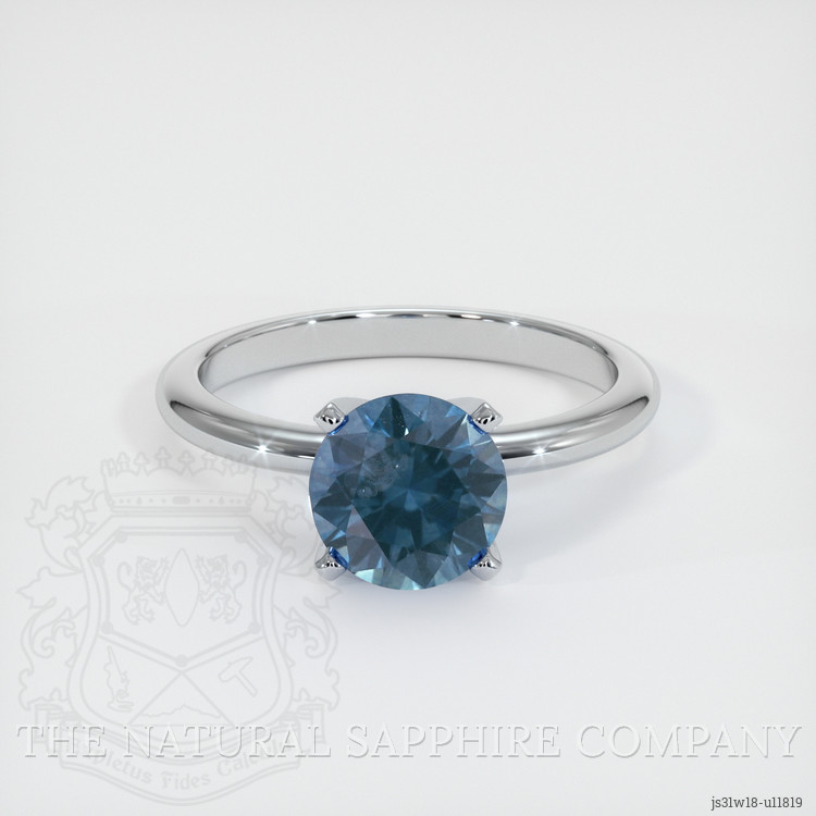 Solitaire Greenish Blue Sapphire Ring 1.44 Ct., 18K White Gold